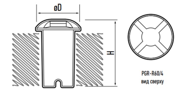 Светодиодный светильник PGR R имеет внешнее кольцо из алюминия, рассеиватель из ударопрочного пластика.